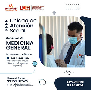 Acércate a Fundación Hidalguense y recibe 𝐀𝐭𝐞𝐧𝐜𝐢𝐨́𝐧 𝐌𝐞́𝐝𝐢𝐜𝐚 𝐆𝐞𝐧𝐞𝐫𝐚𝐥 de calidad de martes a sábado de 09:00 a 14:00 horas.