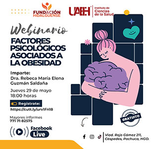 Este jueves 29 de mayo, acompáñanos en nuestro próximo 𝐖𝐞𝐛𝐢𝐧𝐚𝐫𝐢𝐨 𝐠𝐫𝐚𝐭𝐮𝐢𝐭𝐨: ❞𝐅𝐚𝐜𝐭𝐨𝐫𝐞𝐬 𝐩𝐬𝐢𝐜𝐨𝐥𝐨́𝐠𝐢𝐜𝐨𝐬 𝐚𝐬𝐨𝐜𝐢𝐚𝐝𝐨𝐬 𝐚 𝐥𝐚 𝐨𝐛𝐞𝐬𝐢𝐝𝐚𝐝❞, un espacio para reflexionar
