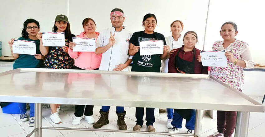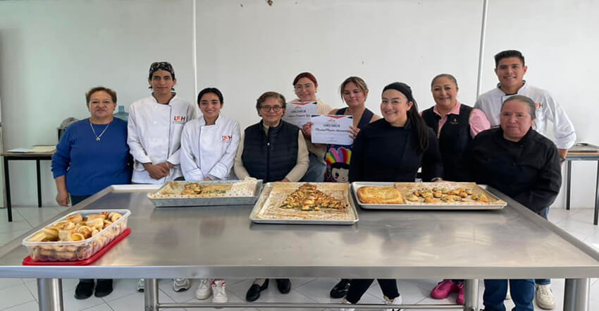 Viernes 23 de marzo de 2018, Curso de Cocina Vanguardista y Montajes las alumnas prepararon "Pechuga rellena de queso de cabra con ceniza" como plato fuerte, acompañado de "Gel de Xoconostle y fritura de verduras", concluyendo con un postre de "Palomitas de caramelo con nube de chocolate blanco y reducción de vino tinto".